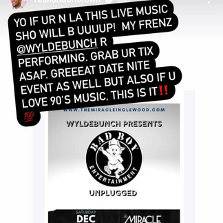 The Road To Bad Boy UnpluggedwyldebunchbandFeb 7, 20231 min readWe put in work to make this show right and tight!! This was December 2022 at the Miracle Theater in Inglewood, CA.